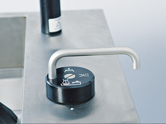 - Wahlhebel für die Funktionen Automatisches Ausbrühen, Handbrausen Ausbrühen und Abpumpen